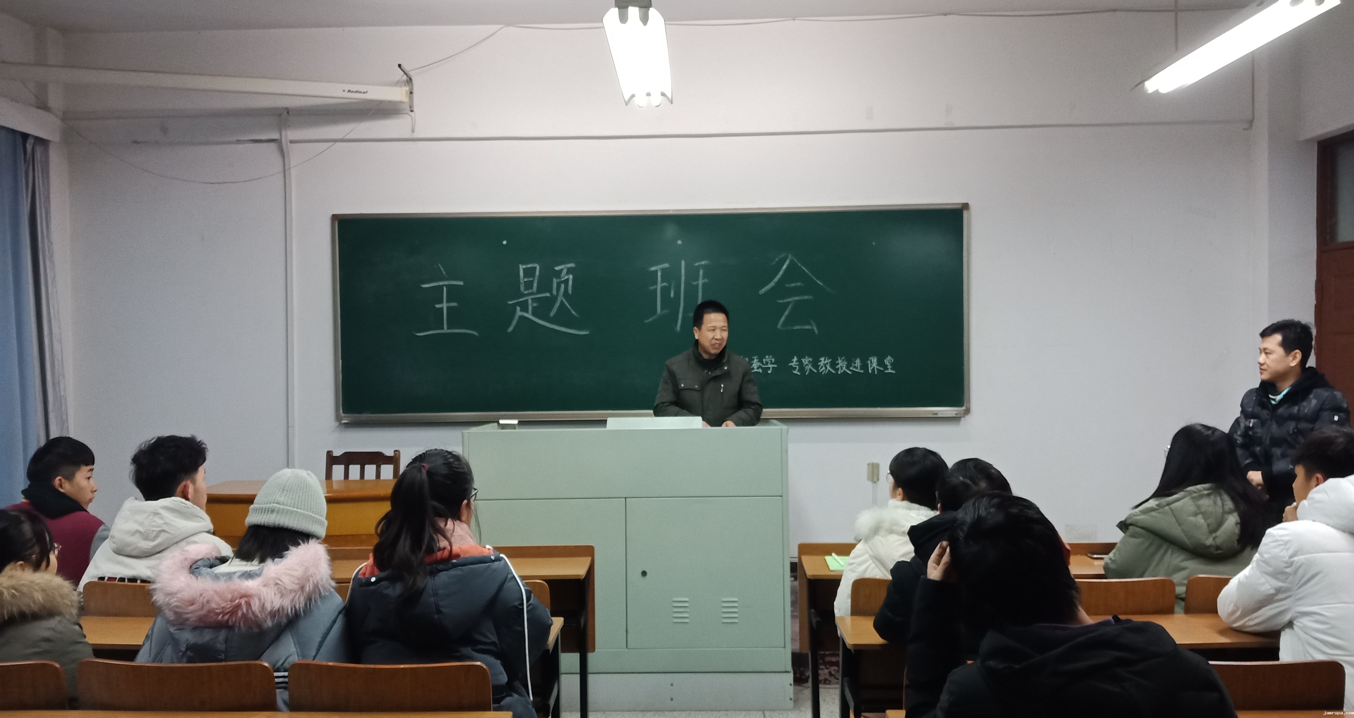 1月3日下午,生物技术学院邀请桂仲争研究员在西区综合楼204教室参加2018级蚕学班主题班会,并为同学们讲述了自己考学经历和科研工作体会,班会由学业导师王学杨主持。