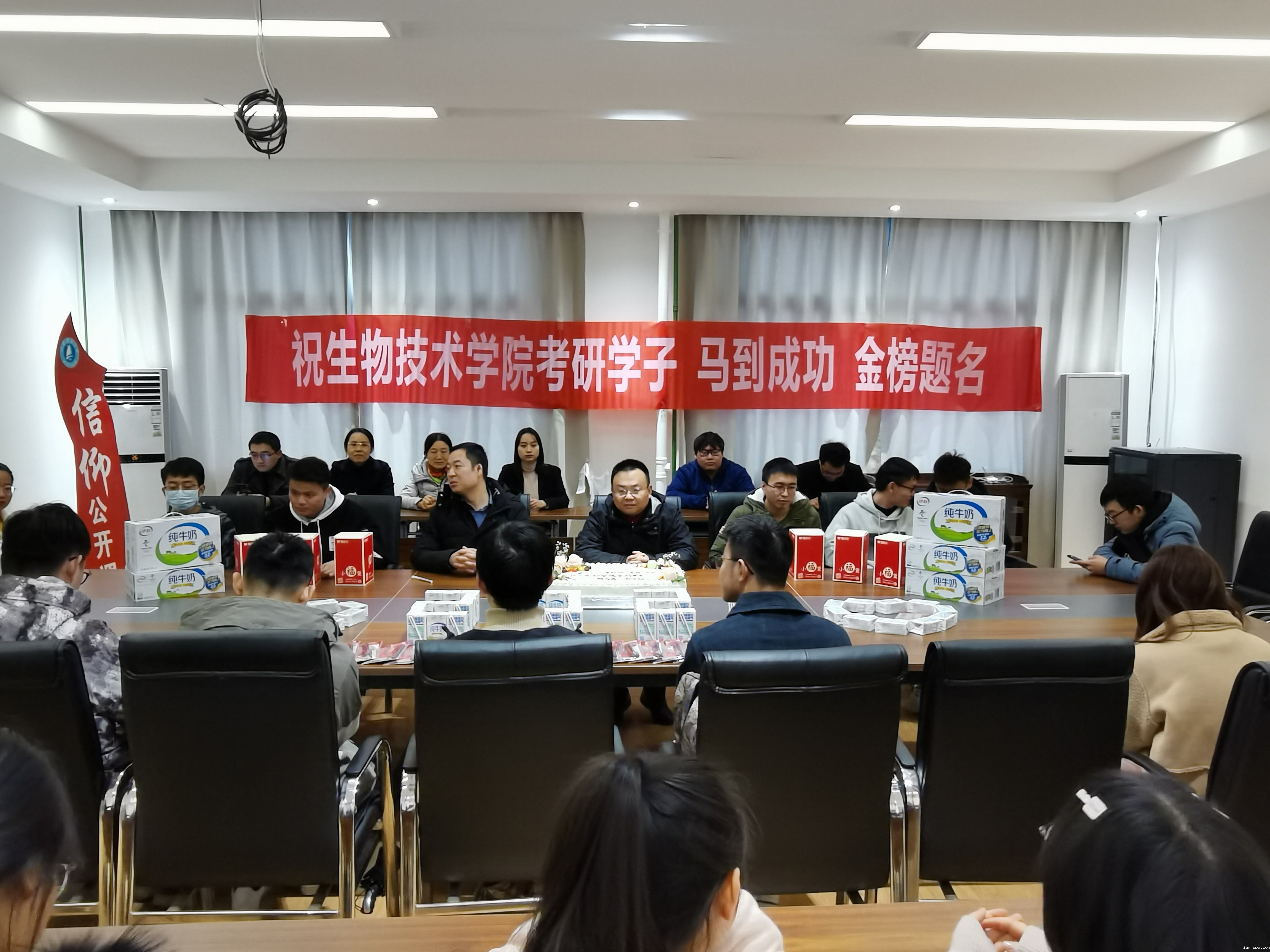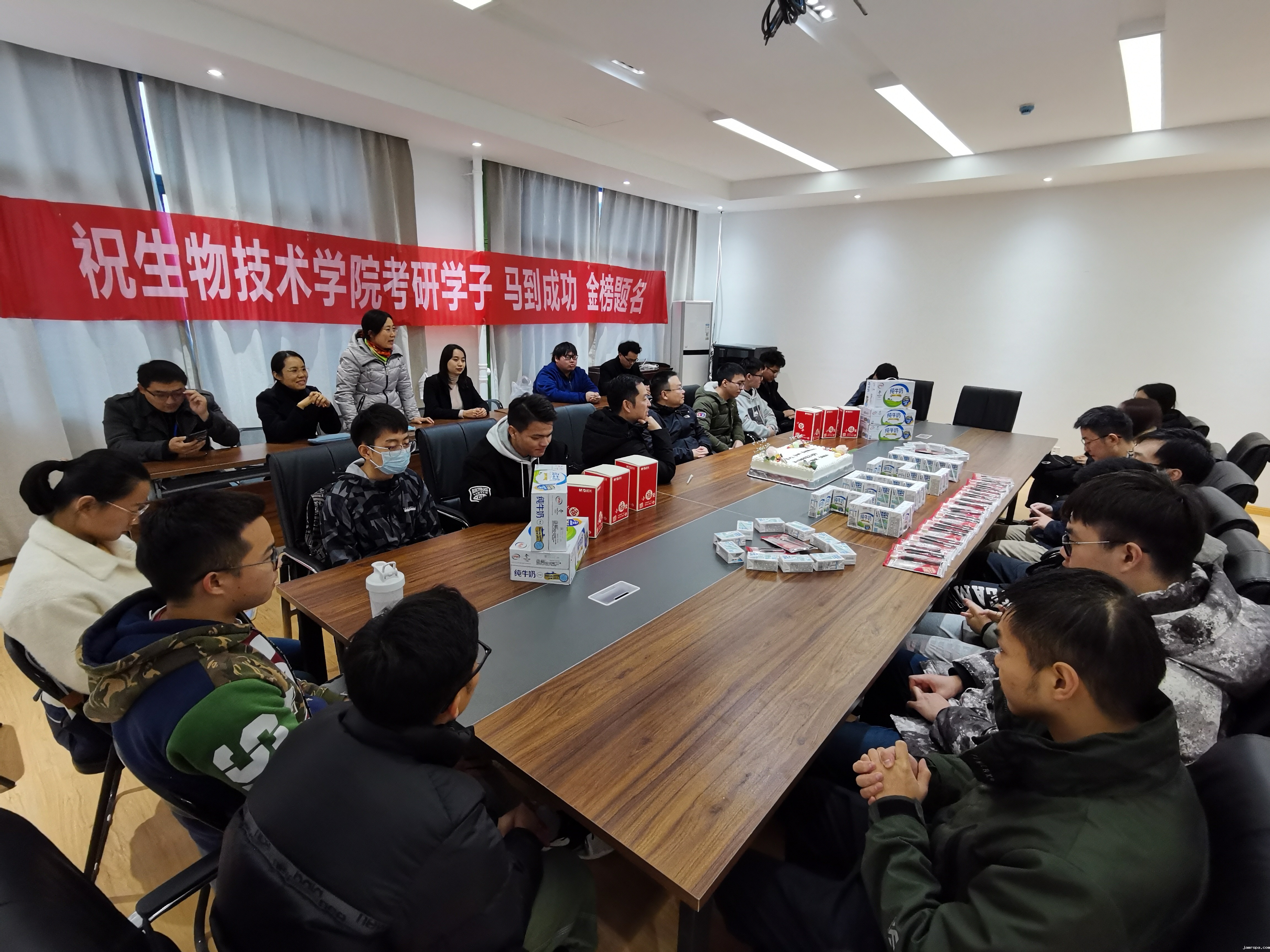 冬来到,春在即,星光不负赶路人,且看你,纵横考场,落笔华章,回首已无憾,未来正可期。随着考研日期将至,备考气氛愈加浓烈,为鼓励考研学生调整心态、做好最后冲刺准备,1211日中午,生物技术学院党委书记杨美成,党委副书记钱平,17级学业导师们以及就业辅导员王荃为生技学院考研学子精心准备了“研路有你,一研为定”暖心慰问活动。活动由院党委副书记钱平主持。
