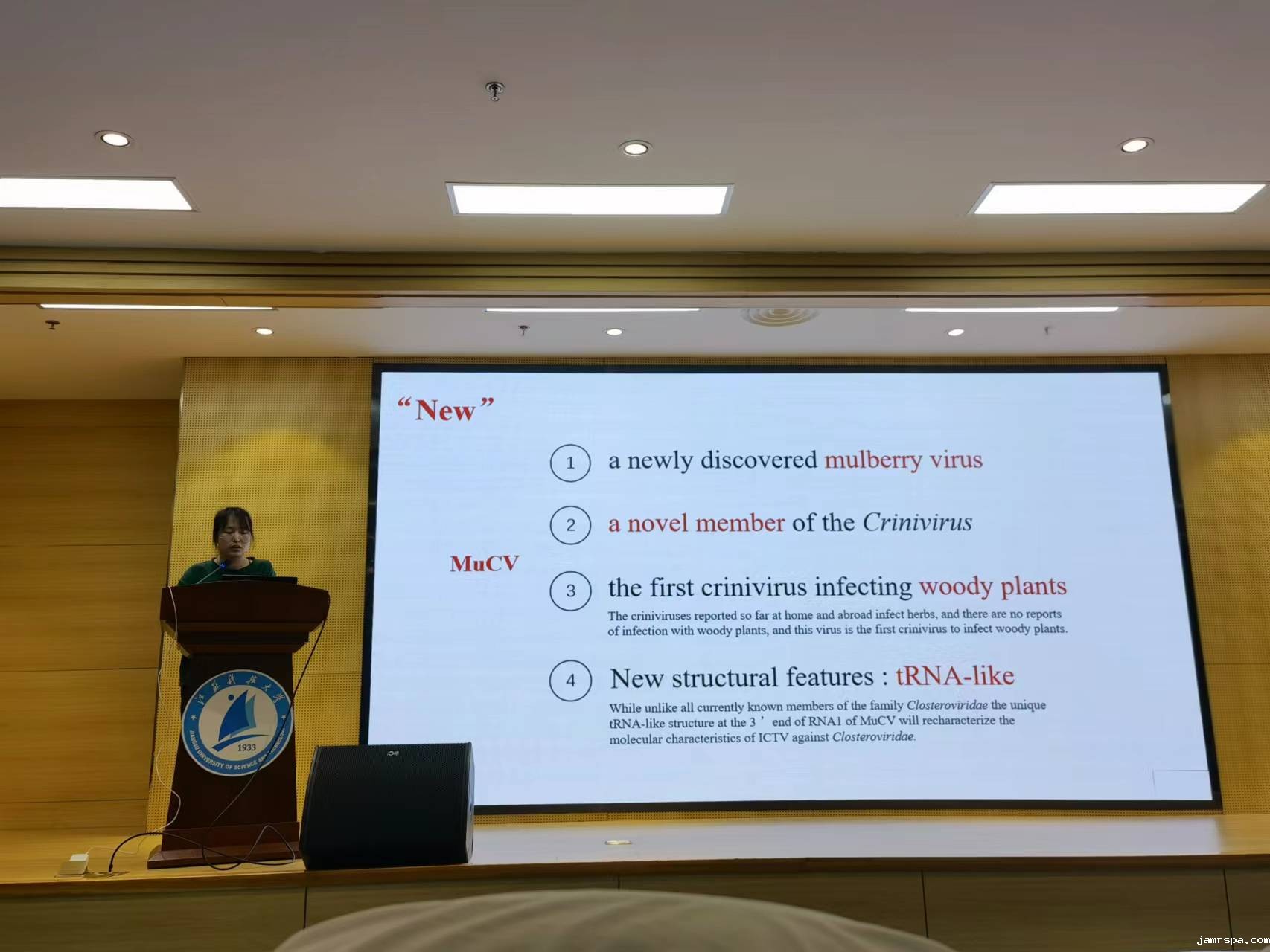 论坛上,张朋同学主要介绍了她的最新发现:桑树上一种新发现的毛状病毒属病毒的全基因组序列及其分子特征研究,该病毒的多种新功能及新特征的发现,让大家对桑病毒有了新的认识;张温馨同学主要向大家分享了葡聚糖酶分子机理改良的研究成果,葡聚糖酶热稳定性改良有助于解决在饲料和啤酒加工工艺中行业问题,并且目前已获得热稳定性改良的突变体重组菌株,这让同样致力于工艺改良实验的学生们受到了很大的启发;浦仕奇同学用他诙谐幽默的语言对关于家蚕对应对微孢子虫侵染的长链非编码RNA的筛选及其研究进行了精彩的汇报,迎来阵阵掌声;李燕威同学向大家细致地介绍了通过与丝素肽结合增强花青素的物理化学稳定性的原理及方法,使大家受益匪浅。