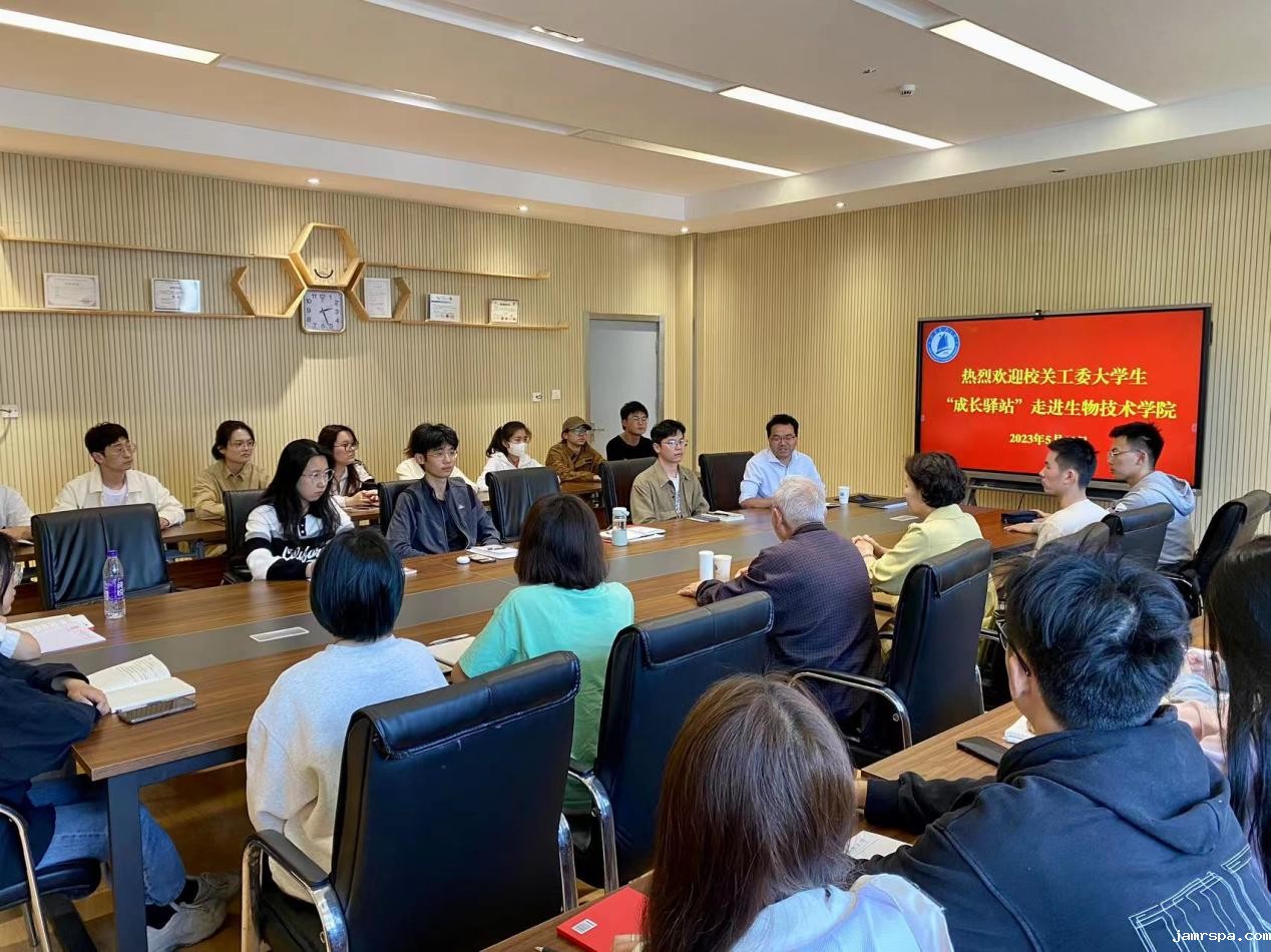 为更好地贯彻落实党的二十大精神,引导广大团员青年坚定听党话、跟党走,积极投身中国特色社会主义事业,校关工委“大学生成长驿站”指导老师潘一乐、吴美花于5月11日下午走进生物技术学院,与学院入党积极分子、学生党员进行了面对面的交流。本次座谈会由学院团委书记、关工委秘书长邹金城主持。