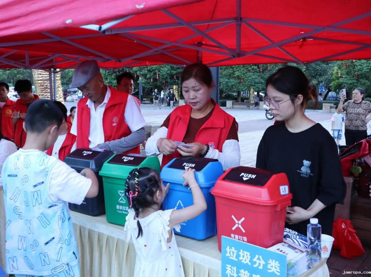 在扬州市江都区龙川小学城南校区,团队成员张榕钦通过举办三类创意小活动布置四分类垃圾桶道具和垃圾分类卡牌,通过分类模拟投放,将10张印有垃圾种类图案卡片投入正确垃圾桶,引导大家学习垃圾分类知识。紧接着,小朋友们跟随志愿者来到附近社区进行垃圾清理社会实践,将学习到的垃圾分类知识运用于生活实际中,以实践来加深对垃圾分类相关知识的记忆。王一凡小朋友在全程参与完活动后表示:“通过理论加实践的学习,让我对垃圾分类的重要性有了更深刻的认识。”