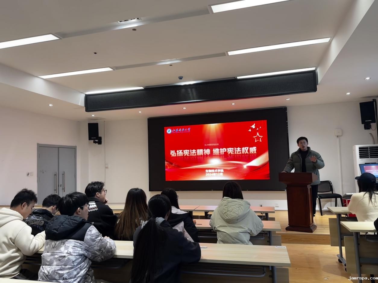 为贯彻党的二十届三中全会精神,强化宪法学习宣传,提升学生宪法意识与法治观念,生物技术学院于12月举办了以“弘扬宪法精神,维护宪法权威”为主题的系列活动。活动通过理论与实践相结合的方式,引导学生增强法律意识,传承法治精神,营造了浓厚的宪法学习氛围。