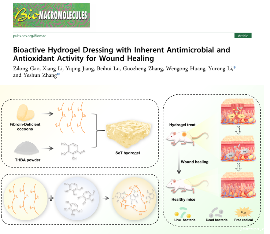 近日,星空体下载、蚕业研究所张业顺团队在化学领域一区TOP期刊 《Biomacromolecules》在线发表了题为“Bioactive Hydrogel Dressing with Inherent Antimicrobial and Antioxidant Activity for Wound Healing”的研究论文。这是该团队2025年以来在丝胶生物医用材料领域发表的第7篇SCI论文(其中1篇为与苏北人民医院合作发表)。